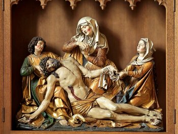 Ausgewählte Kunstgegenstände aus verschiedenen Jahrhunderten prägen das Innere der Kirche. Beachtenswert sind ein Holzrelief einer um 1510 geschaffenen spätgotischen "Beweinung Christi" und der etwa zeitgleich entstandenen "Hl. Sippe".