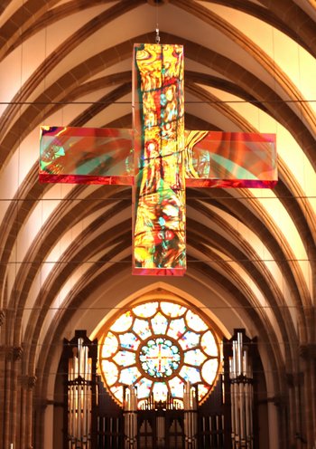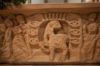 Ambo, Altar und Kreuz wurden 1974/75 von dem Speyerer Künstler Georg Günther Zeuner (1923 - 2011) geschaffen. Im Jahr 2024 konnte im Altarraum ein Lichtkreuz des renommierten Künstlers Ludger Hinse (*1948) installiert werden.