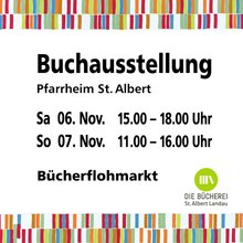 Die Katholische öffentliche Bücherei St. Albert Landau, Drachenfelsstraße 2a präsentiert am Samstag, 06. November von 15:00 bis 18:00 Uhr und am Sonntag, 07. November von 11:00 bis 16:00 Uhr eine Medienauswahl mit neu erschienenen Büchern für alle Altersgruppen und aus allen Wissensgebieten. Die attraktive Auswahl wurde von der Bonner borromedienGmbH aus der Vielzahl von Neuerscheinungen ausgewählt. Die Titel können direkt bei der Bücherei bestellt werden.