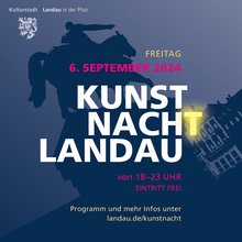 Das nächste Highlight im Landauer Kulturkalender steht bevor: Am Freitag, 6. September 2024 findet die 3. Kunst.Nach(t).Landau statt, zu der Oberbürgermeister und Kulturdezernent Dr. Dominik Geißler herzlich einlädt.