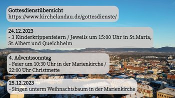 Viele weitere Informationen rund um unsere Pfarrei Mariä Himmelfahrt Landau und ihre Gemeinden St. Maria, St. Albert, Mörzheim & Wollmesheim, Queichheim und Mörlheim finden Sie in unserem aktuellen Weihnachtsbrief.