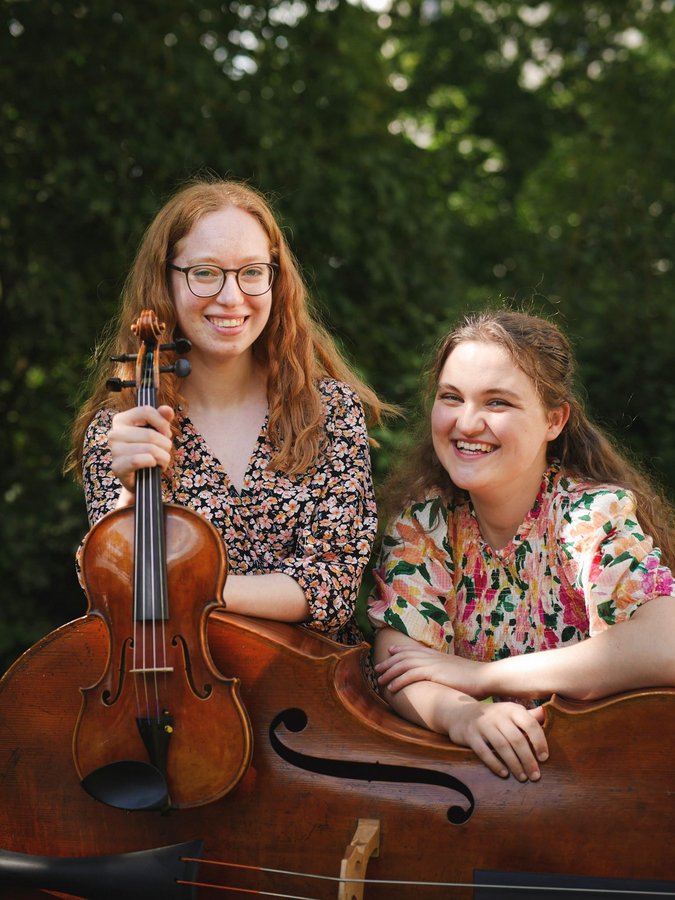 Alyssa Knoll, Violine, aus Büchelberg und Amanda Aßmann, Kontrabass, aus Hamm laden zu einem Konzert in die Kapelle der Maria-Ward-Schule Landau ein.