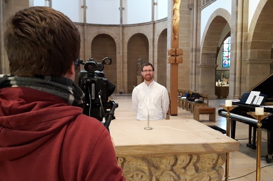 Die Gottesdienste an Gründonnerstag und Karfreitag wurden aus der Marienkirche live auf YouTube übertragen. Die Gestaltung übernahmen Dekan Axel Brecht, Gemeindereferentin Bärbel Grimm, Kaplan Christoph Herr, Gemeindereferent Artur Kessler und musikalisch Dekanatskantor Horst Christill (an der Steinmeyer-Orgel und am Flügel), Hochschulseelsorger Nico Körber (Saxophon), Amelie Gerst (Gesang, Violine) und Daniela Deny (Gesang).