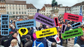 Aufstehen für Menschenwürde und Demokratie – und gegen politischen Extremismus – das ist heute wichtiger denn je. Stehen Sie gemeinsam mit uns auf – für Menschenwürde und Demokratie!