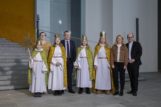 Seit 1984 bringen die Sternsingerinnen und Sternsinger jedes Jahr ihren Segen ins Bundeskanzleramt. Jeweils vier Königinnen und Könige aus allen 27 Bistümern repräsentieren dabei alle Kinder und Jugendlichen, die sich bundesweit an der Aktion beteiligen.