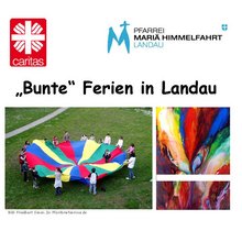 In den Sommerferien sind wieder alle 6 bis 12jährigen Kinder zur Sommerfreizeit „Bunte Ferien in Landau“ eingeladen. Eine Woche lang - vom 29.7. bis 2.8. - bieten wir in Kooperation mit dem Caritas-Zentrum Landau ein buntes Programm mit viel Spiel + Spaß rund ums Pfarrheim St. Albert und einigen Ausflügen in die nähere Umgebung.