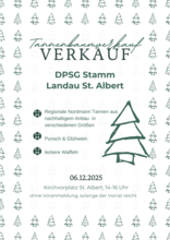 Am Samstag, 6. Dezember, bieten die DPSG-Pfadfinder vom Stamm St. Albert Landau auf dem Kirchenvorplatz (Drachenfelsstraße 2) der St. Albertkirche wieder Christbäume an. Sie stammen von einem regionalen Züchter, der die Bäume nachhaltig und mit viel Engagement biologisch anpflanzt.