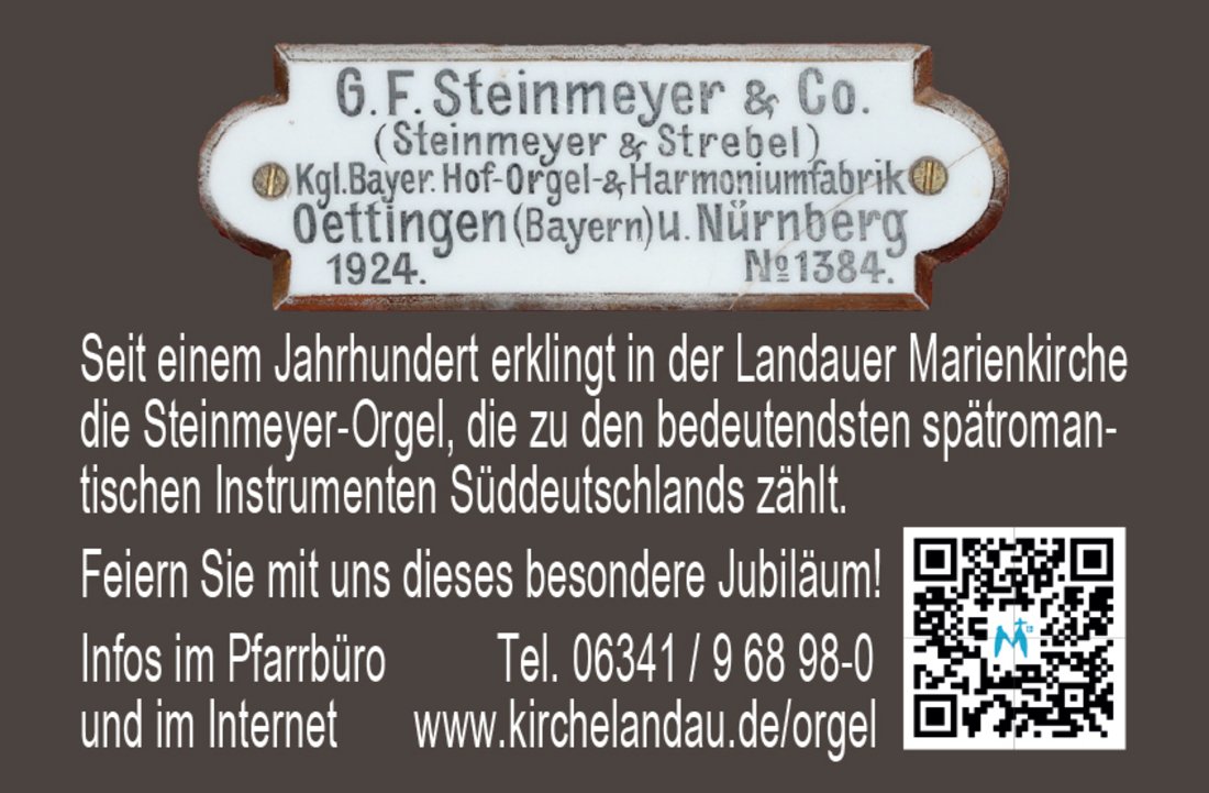 Wir feiern 2024 den 100. Geburtstag unserer Steinmeyer-Orgel in der Marienkirche Landau.