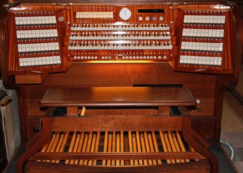 Im abschließenden Zyklus von acht kurzen Stücken von Sigfrid Karg-Elert präsentiert Markus Eichenlaub nochmals wie in einem Kaleidoskop die klangliche Vielfalt dieser Orgel mit ihren 72 Registern und drei Manualen.