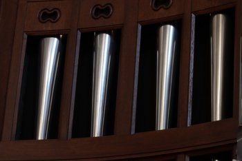 Welche Leckerbissen erwarten nun den Orgel-Feinschmecker? Drei Schwellwerke (davon eines, besetzt mit Echobordun und Vox humana, als Schwellwerk im Schwellwerk) erlauben orchestrales dynamisches Spiel in raffinierten, nahtlos ineinander übergehenden Schattierungen (beispielsweise der zwei Schwebungen in Positiv und Schwellwerk mit- und gegeneinander). Ein reichlich gefüllter Korb voller charakteristischer 8‘-Register bringt bei phantasievollem und experimentierfreudigem Spiel immer neue, apart singende Wirkungen hervor. Durch ausgebaute Superoktav-Koppeln und die Suboktav-Koppeln vervielfachen sich die klanglichen Kombinationsmöglichkeiten noch einmal enorm. Clarinette, Tuba mirabilis und Oboe, Terz 3 1/5‘ in Hauptwerk und Pedal, die bis zur Septime 1 1/7‘ ausgebaute Obertonreihe, drei Tremulanten und noch vieles andere mehr lassen Faszination und Freude an den entstehenden Klangfarben nicht erlahmen.