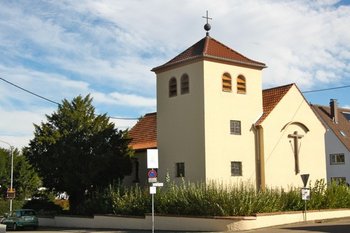 Die katholische Kirche von Wollmesheim steht am Ortsausgang Richtung Mörzheim. Sie bietet knapp 100 Menschen einen Sitzplatz, besticht durch ihre Schlichtheit und vermittelt ein angenehmes Raumgefühl.